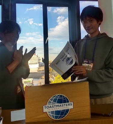 TM Iで、TM Fのスピーチを評価されました。全体的にやる気を掻き立てるような評価スピ