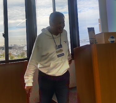 美しい天気だったので、メンバーの多くは波止場会館の会場からの景色を楽しんでいまし