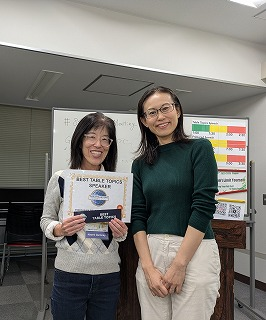 今回のテーブルトピックスマスターは、初登場の TM F でした。初めてとは思えないくら