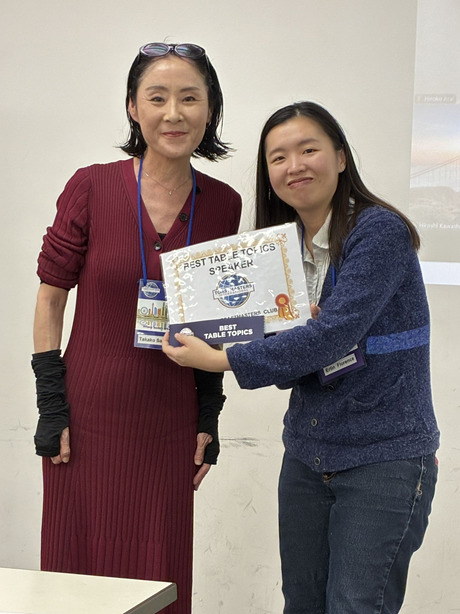 英語テーブルトピックスコンテスト: TM O 第3位!