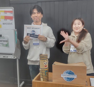 just joined the club last month and made his icebreaker speech. His English is