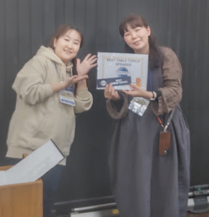 MT氏が全体の一般評価を行い、司会TM M氏に引き継ぎました。最優秀Table Topic